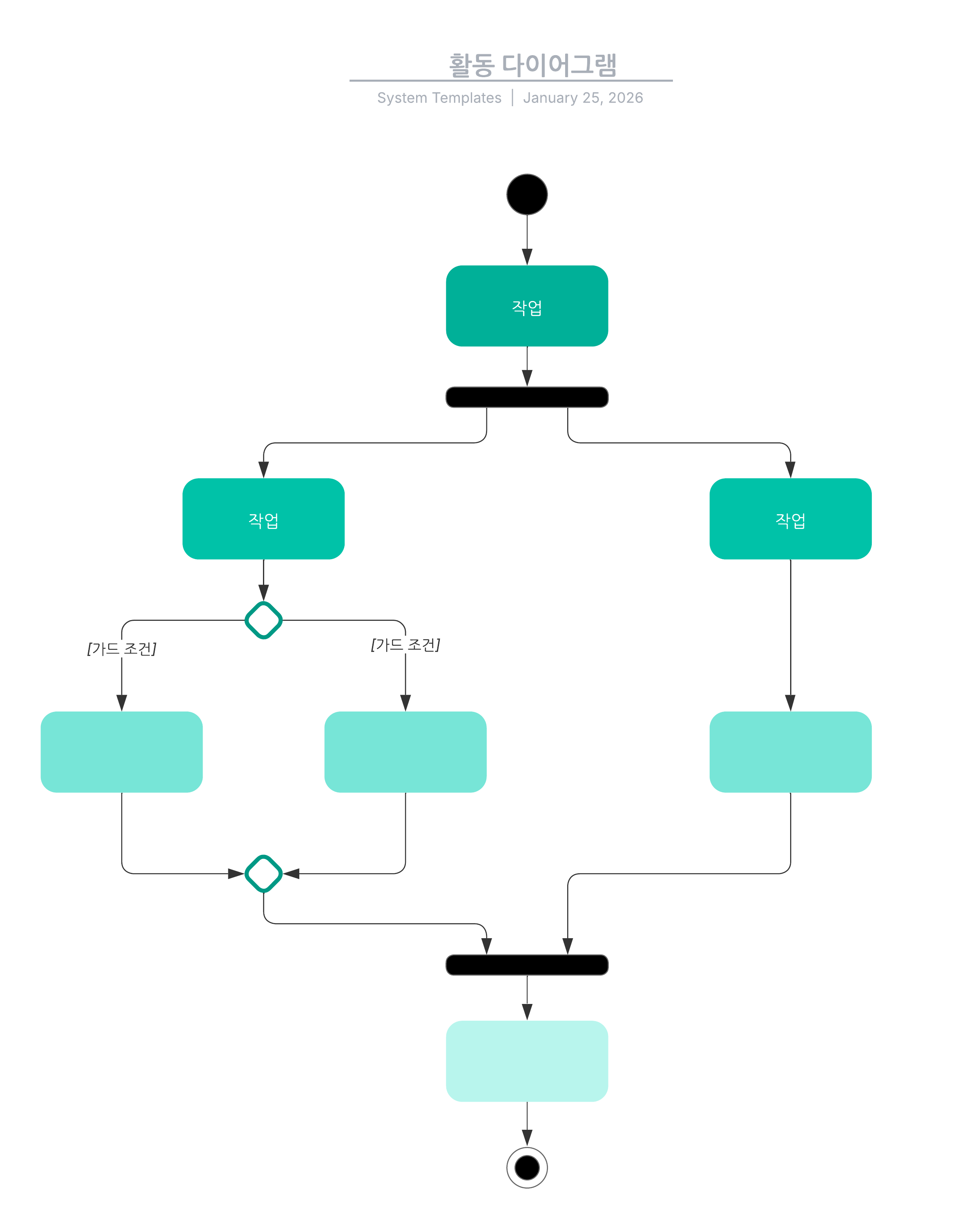 사용 사례에 맞게 활동 다이어그램을 커스터마이징하려면 이 템플릿을 열고 내용을 추가하세요.
